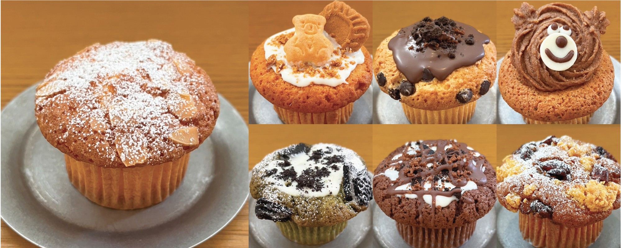 しっとりふわふわのマフィン8種に加え、香ばしい米粉クッキー、サクサク食感のスコーンなど、