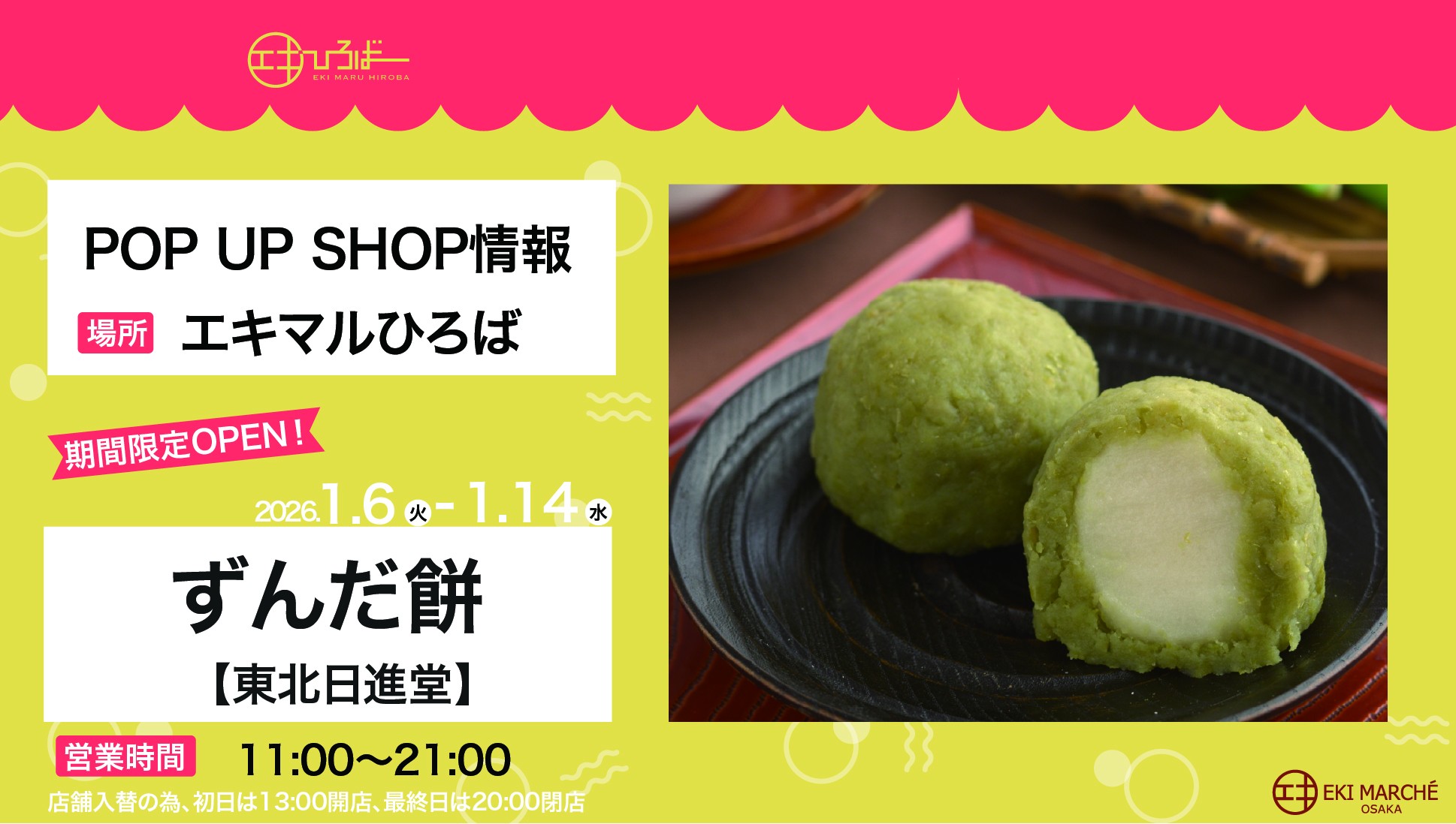 2026年1月6日~1月14日 の期間限定でエキマルひろばに出店いたします!