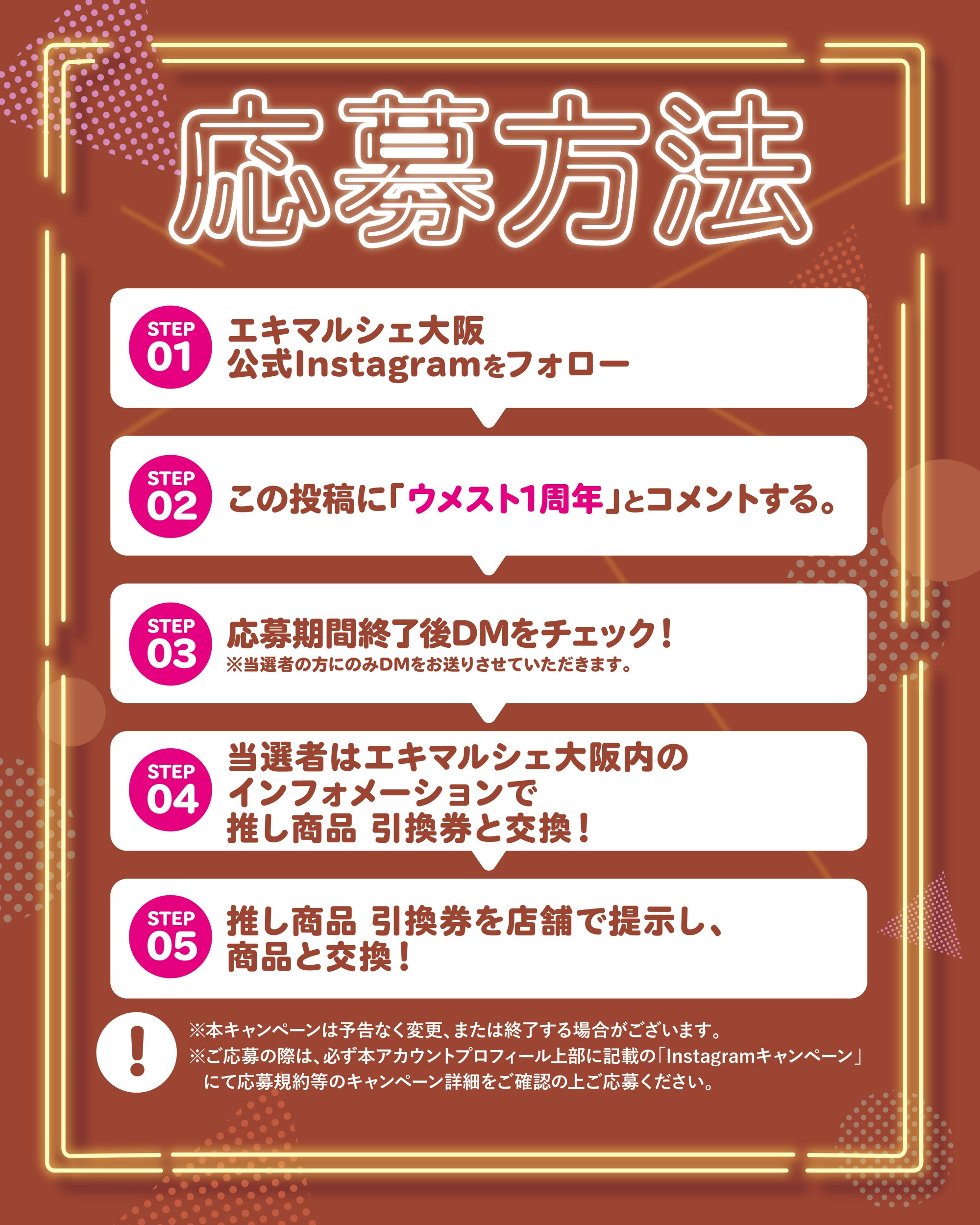 エキマルシェ大阪ウメスト1周年!🎁 111名様に当たる!Instagramキャンペーン 🎁