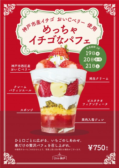 神戸市産のイチゴをたっぷり使用した、『めっちゃイチゴなパフェ🍓』を販売します✨